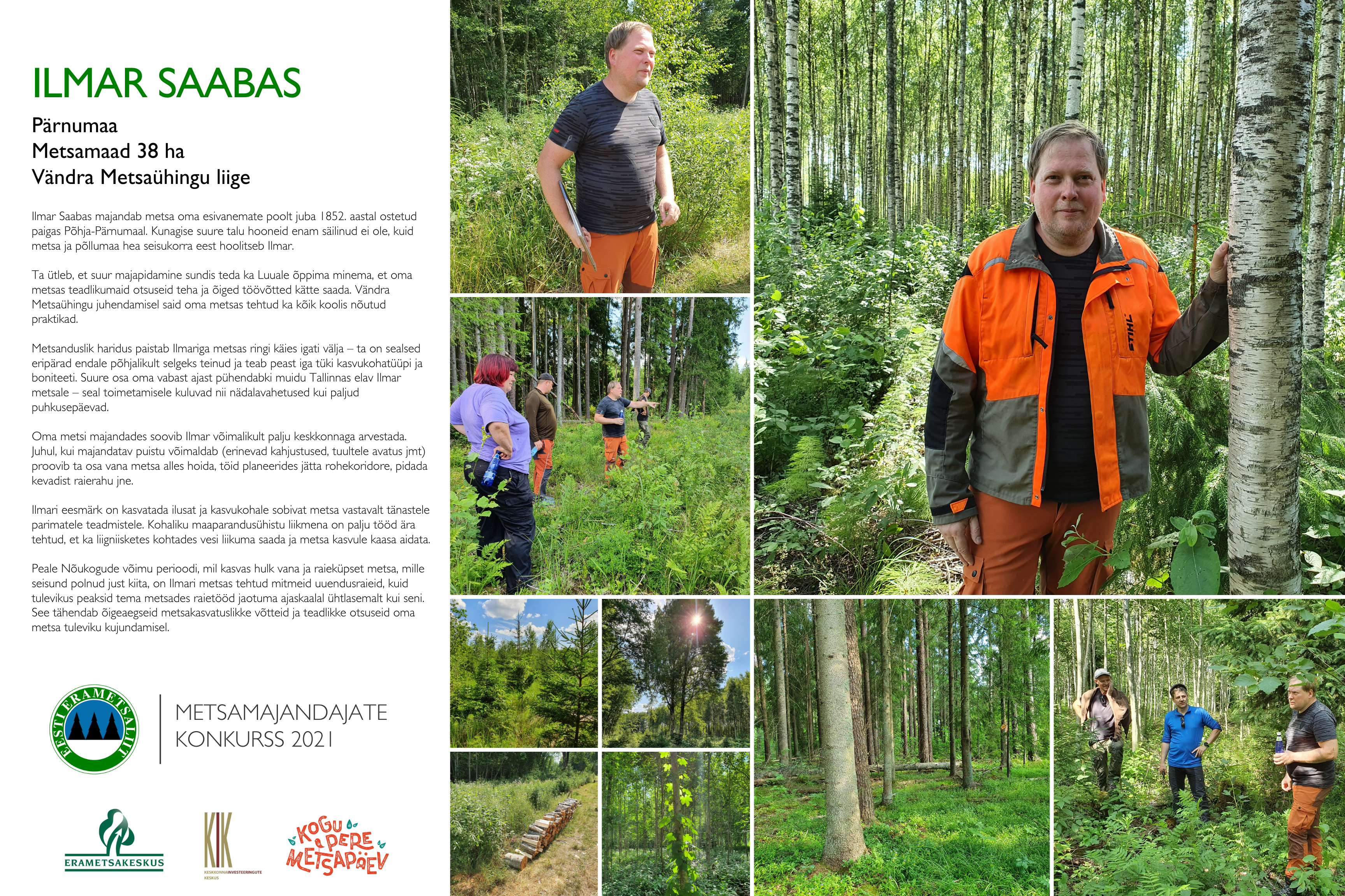 Ilmar Saabas majandab metsa oma esivanemate poolt juba 1852. aastal ostetud paigas Põhja-Pärnumaal. Kunagise suure talu hooneid enam säilinud ei ole, kuid metsa ja põllumaa hea seisukorra eest hoolitseb Ilmar.