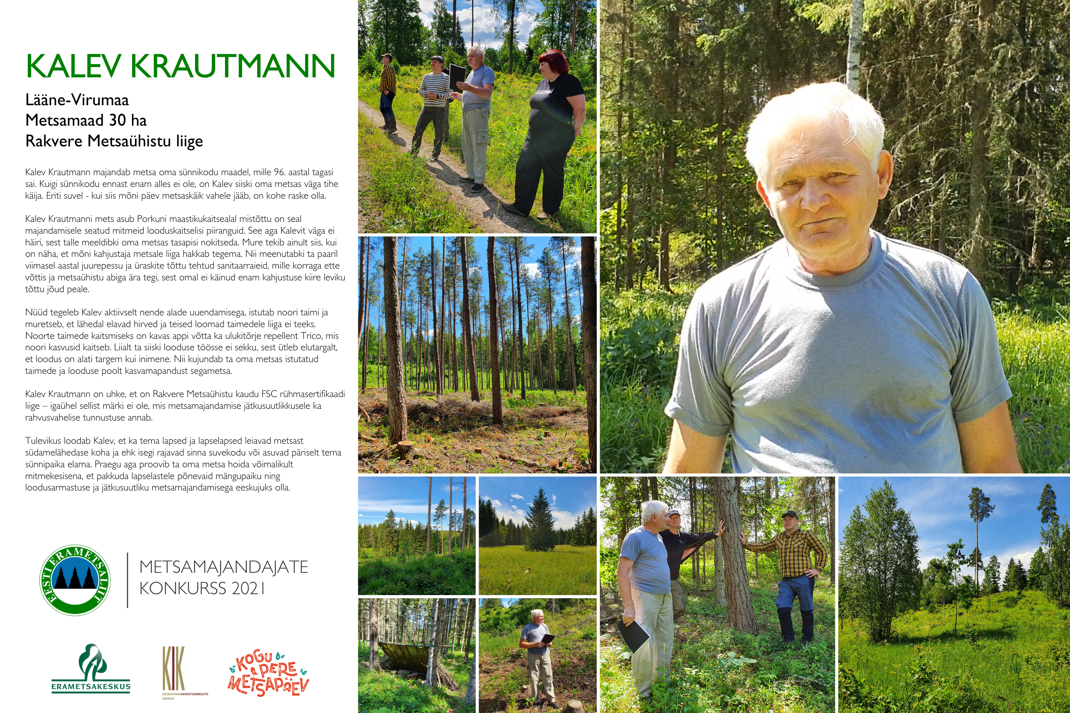 Kalev Krautmann majandab metsa oma sünnikodu maadel, mille 96. aastal tagasi sai. Kuigi sünnikodu ennast enam alles ei ole, on Kalev siiski oma metsas väga tihe käija. Eriti suvel – kui siis mõni päev metsaskäiku vahele jääb, on kohe raske olla.