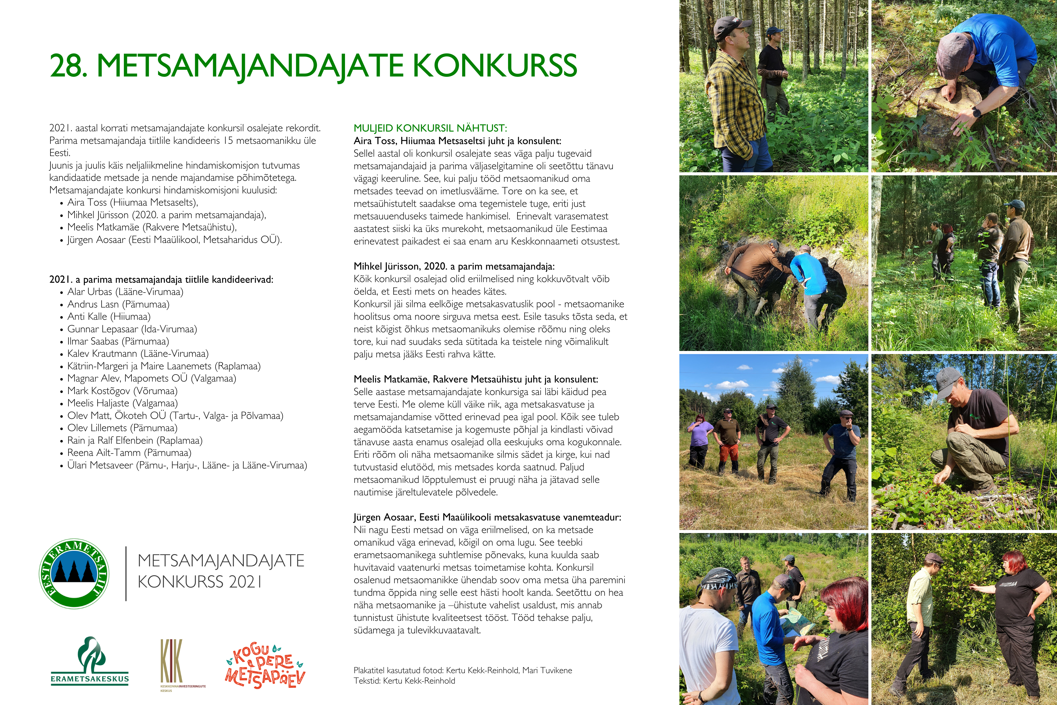 Metsamajandajate konkurssi korraldavad Eesti Erametsaliit ja SA Erametsakeskus, toetab SA Keskkonnainvesteeringute Keskus.